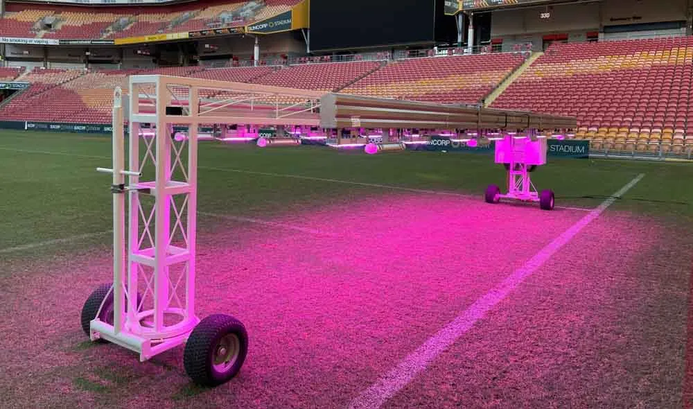 Usually the grow lights not install directly in the stadium. It’s usually install in a equipment. When it needs to grow grass or maintenance, move the equipment to lighting it.